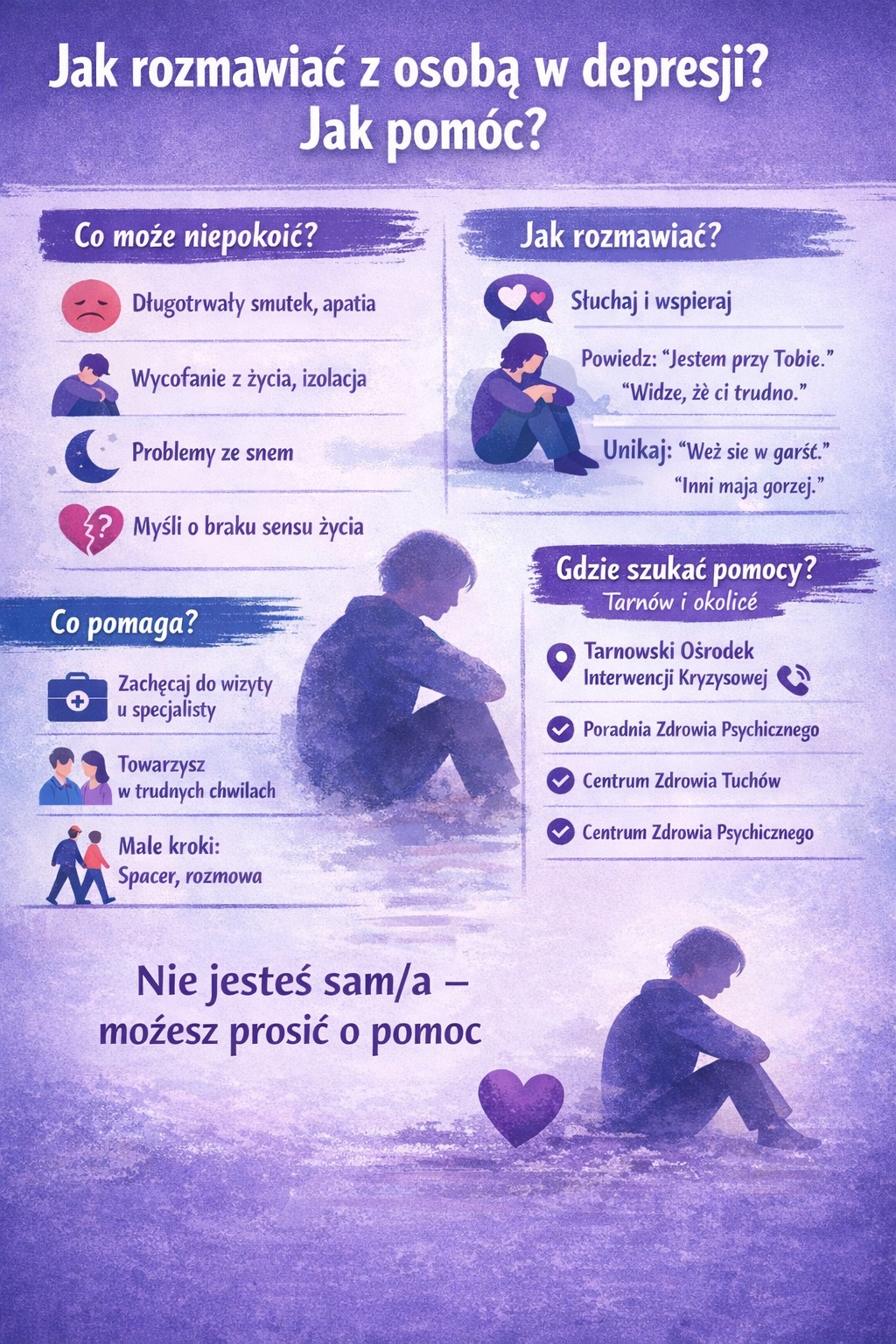 Depresja może dotknąć każdego – niezależnie od wieku, płci, sytuacji rodzinnej czy zawodowej. Nie mija po „wzięciu się w garść”. 👉Wymaga zrozumienia, wsparcia i często profesjonalnej pomocy.